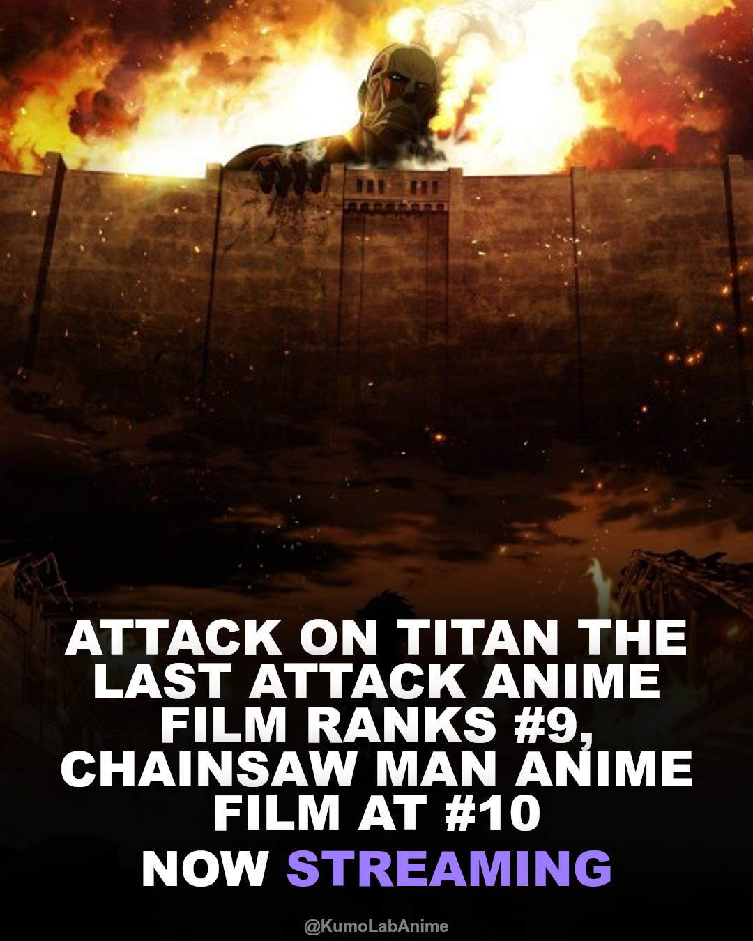 Attack on Titan The Last Attack Anime Film Ranks #9, Chainsaw Man Anime Film at #10